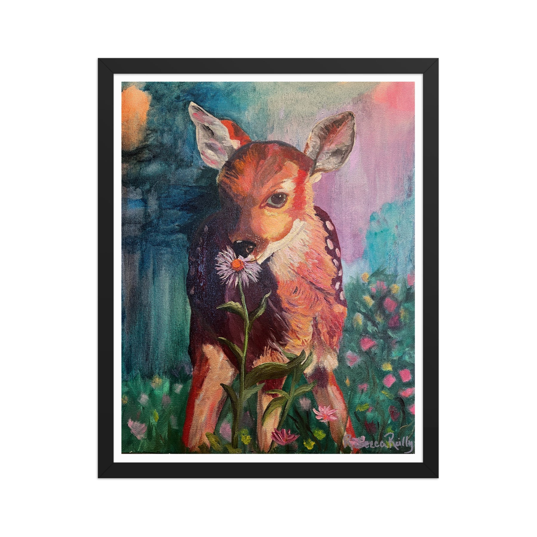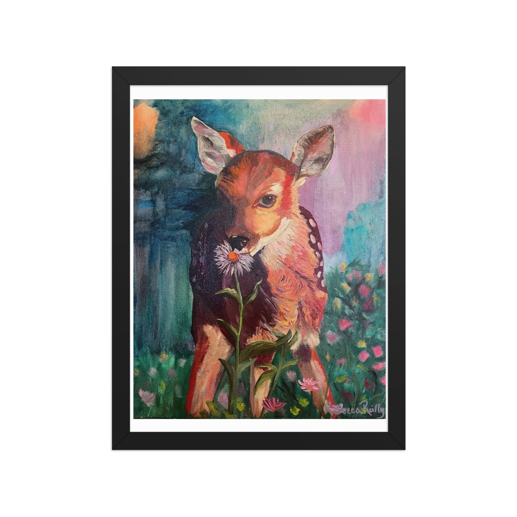 "Fawn Fun in a Magical Forest" - Framed poster