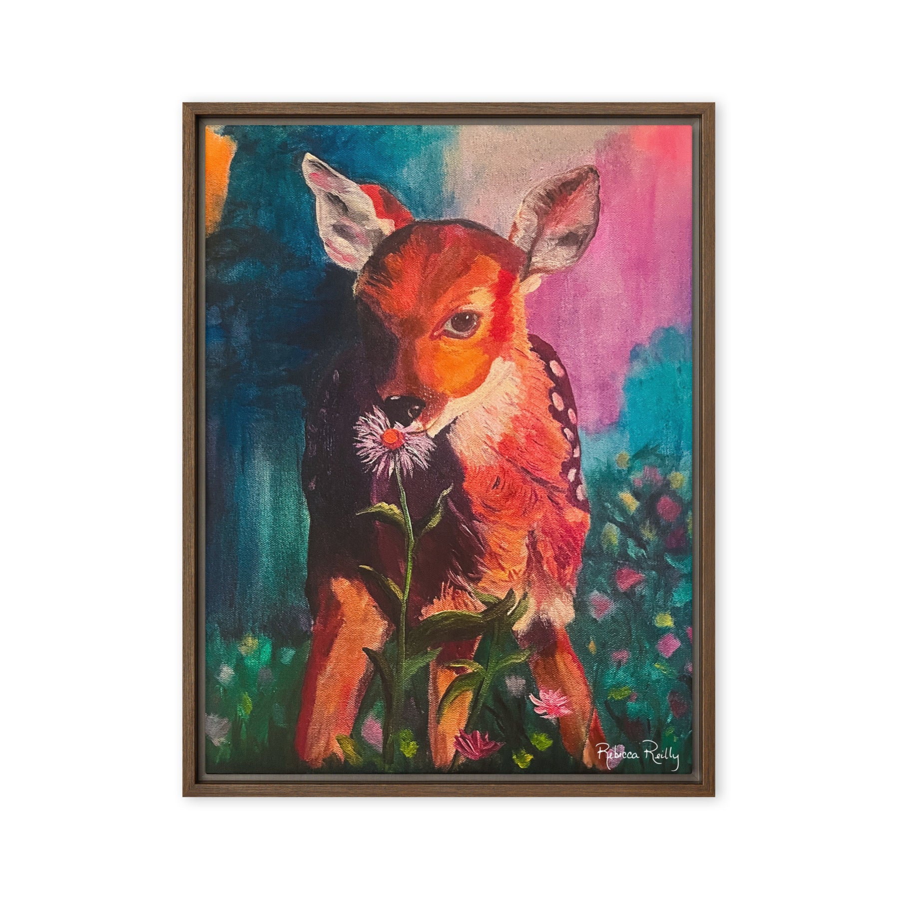 "Fawn Fun in a Magical Forest" - Framed Canvas